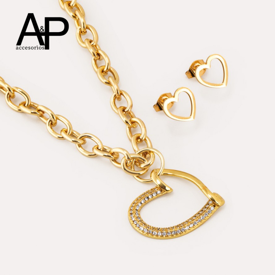 BL0043- JUEGO CORAZON LISO CON CADENA ESLAVONADA