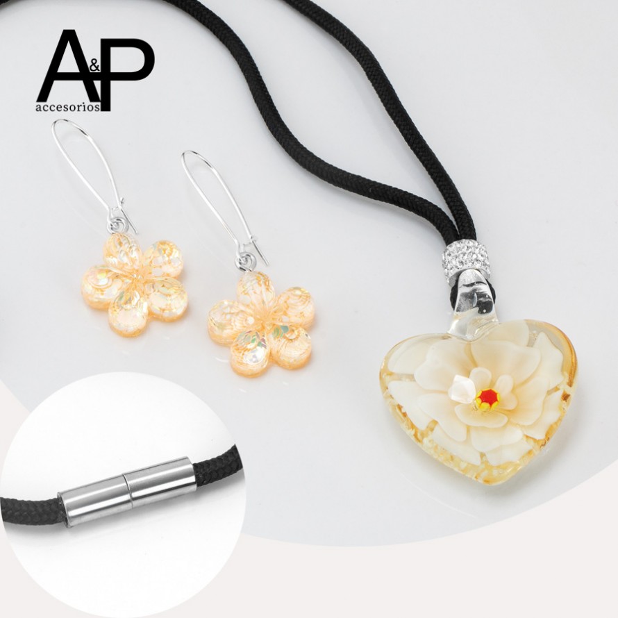 MT210- JUEGO CRISTAL CON FLOR INMORTALIZADA BEIGE