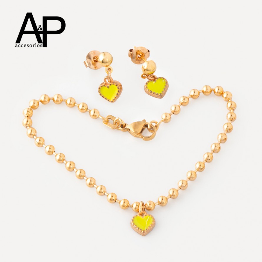 MT138- ARETE CORAZON AMARILLO CON PULSERA