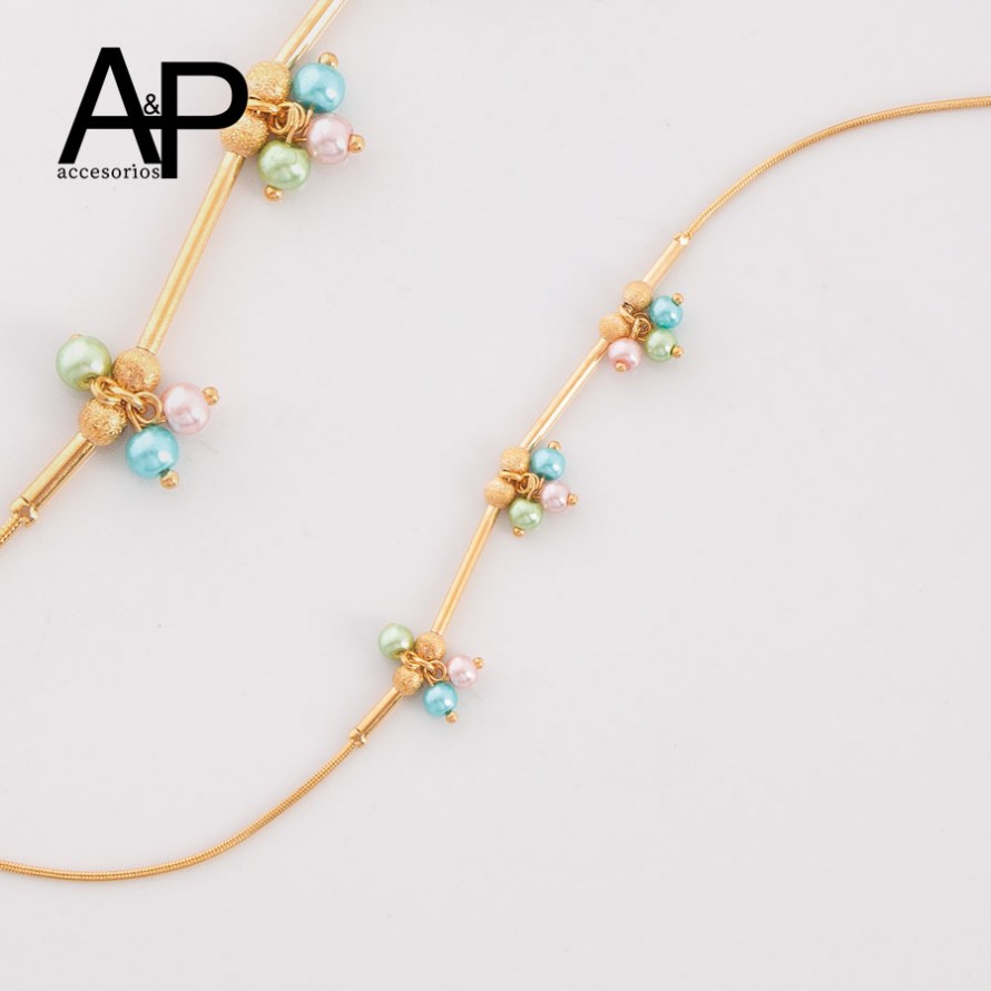 EAP392- TOBILLERA COLA DE RATON Y PERLAS DE COLORES