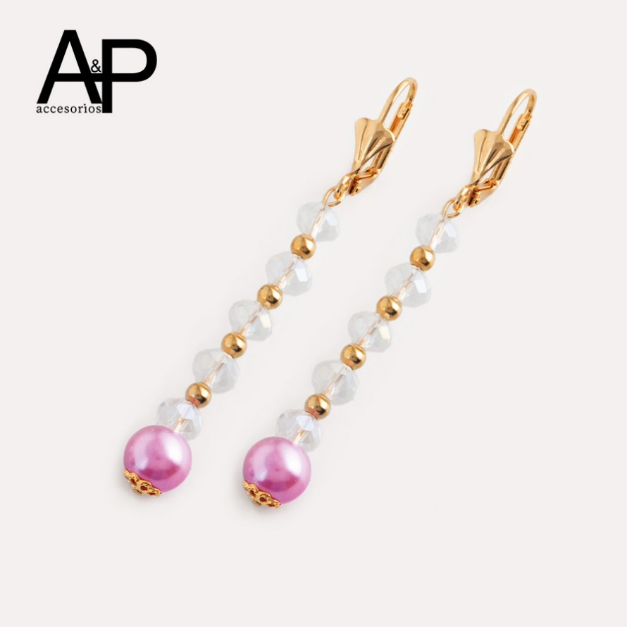 MT081- ARETES LARGOS PERLA TEJIDA Y LISA