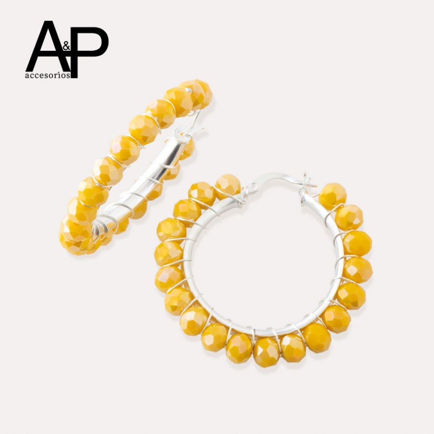 EAP294- ARETES CON MURANOS RONDALLA AMARILLA Y PERLA