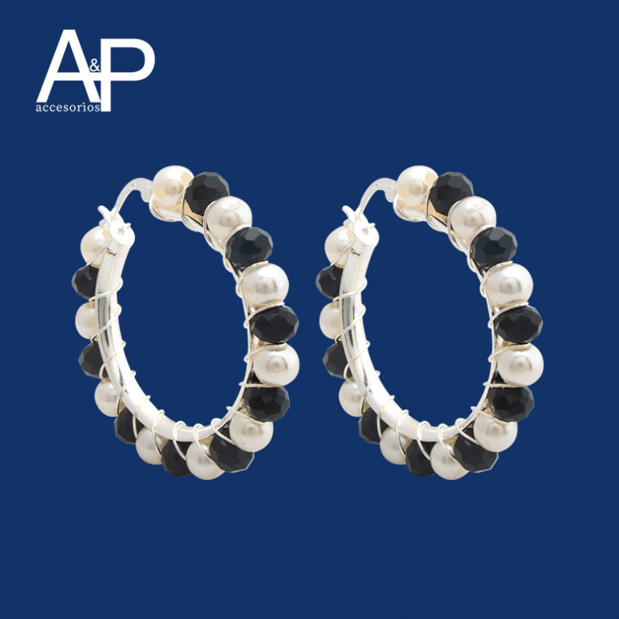 MT113- CANDONGA TEJIDA PERLA CON MURANO NEGRO