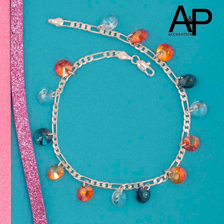 AP25-TOBILLERA ZIRCONES LAMINADO PLATA