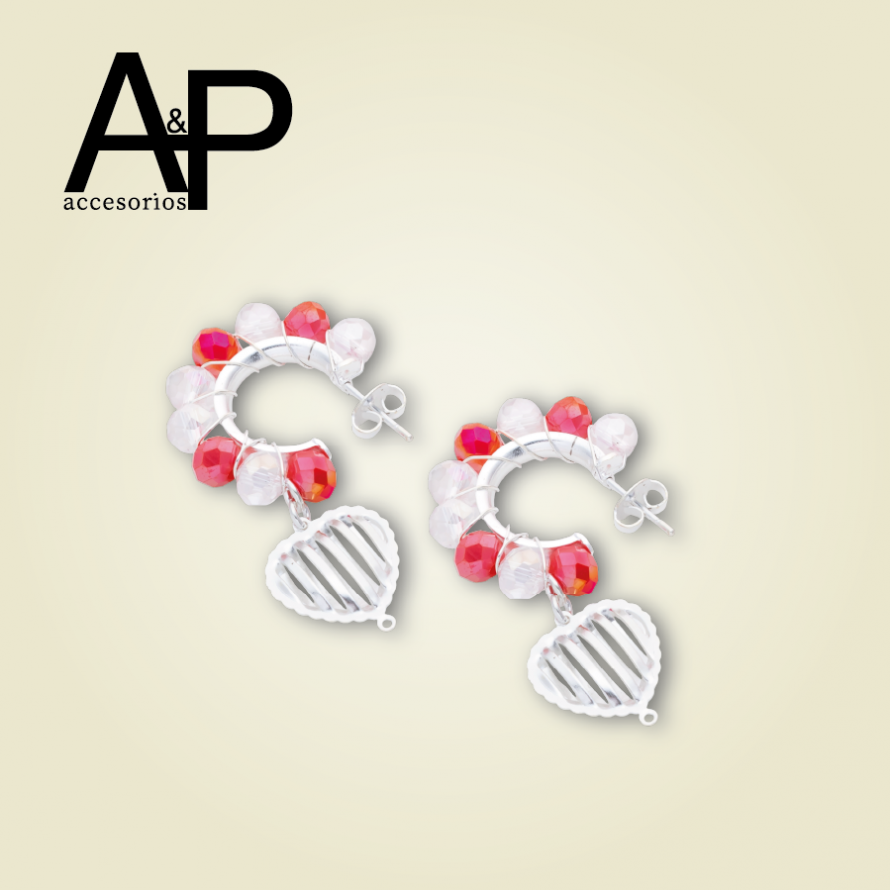 MT258- CANDONGA MURANOS ROJOS CON DIJE CORAZON