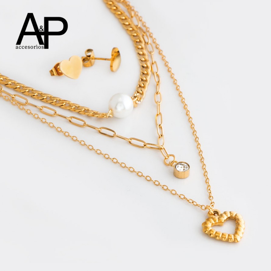 DAP1044- JUEGO TRIPLE PERLA ,CIRCON,DIJE CORAZON
