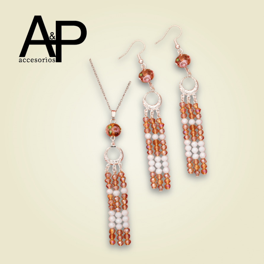 MT266- JUEGO LARGO MURANOS CON BOLA VIDRIO FLOR