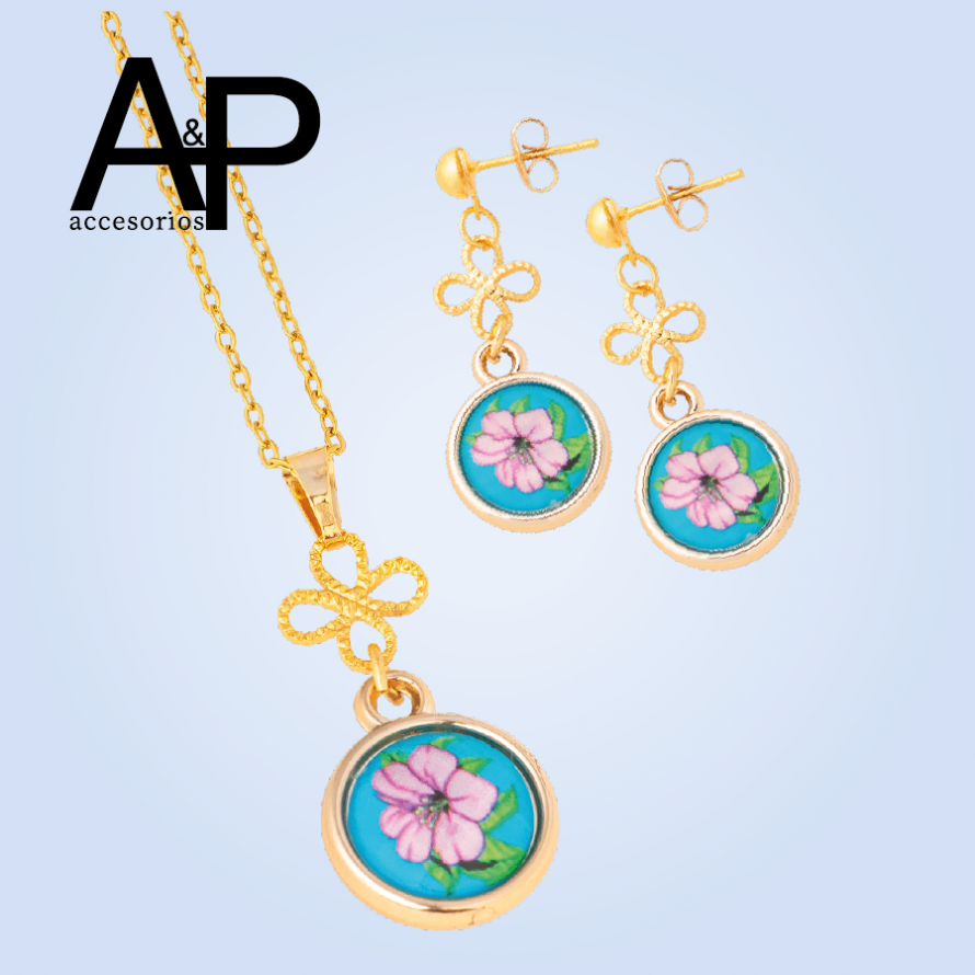 MT269- JUEGO FLOR FONDO AZUL