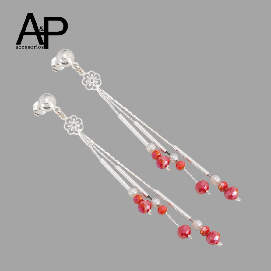 MT151- ARETE LARGO TUBOS Y MURANOS ROJO
